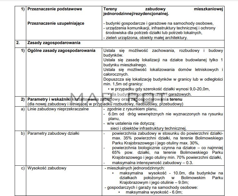 Przeznaczenie MPZP - zabudowa jednorodzinna (rezydencjonalna)/letniskowa