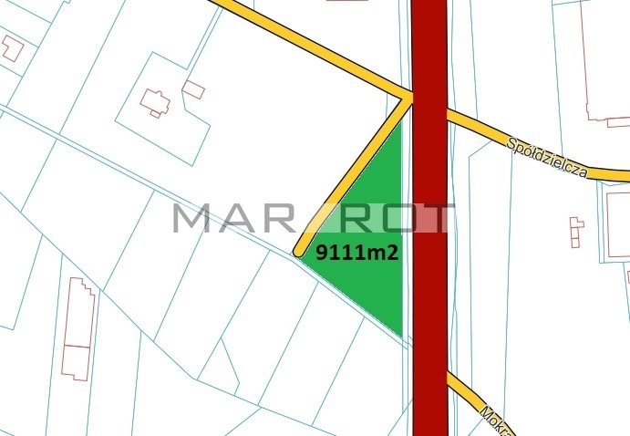 zjazdu na stację benzynową. Powierzchnia 9111m2. Dla gruntu zostały wydane WZ dla inwestycji polegającej na budowie budynku usługowo-mieszkalnego.