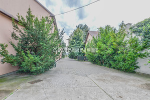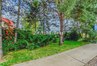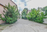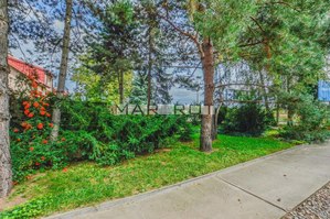 Na działce od strony ulicy ogród/drzewa iglaste, krzewy.