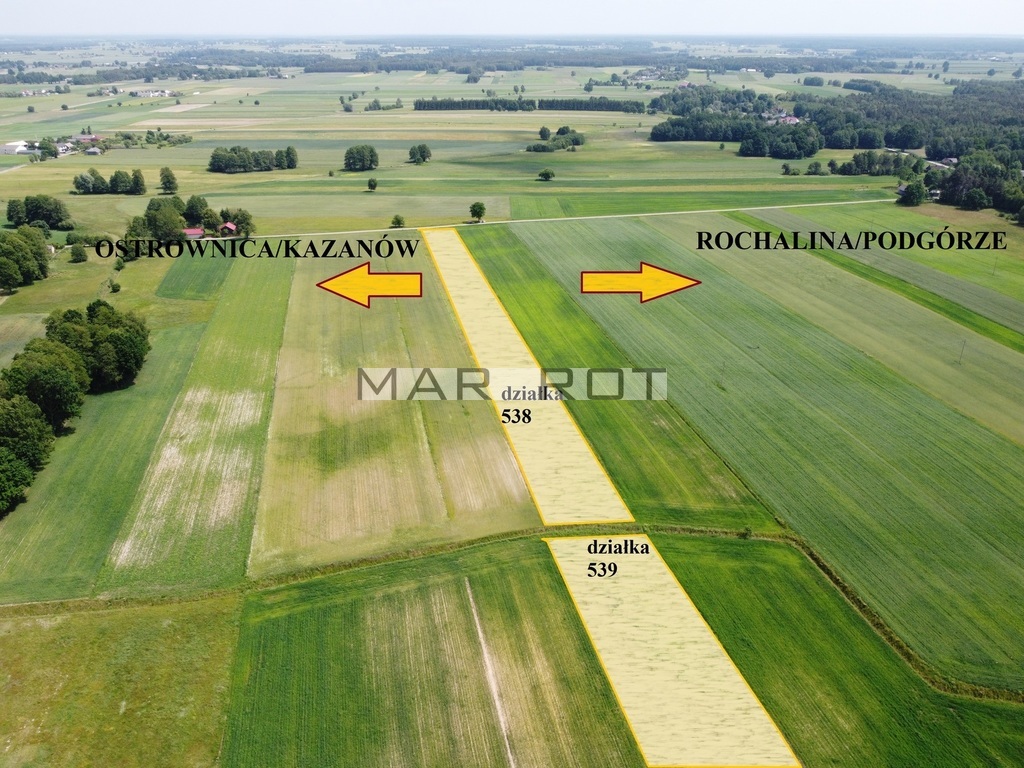 Działka 538 sprzedawana łącznie z działką 539 obręb Ostrownica Wieś o powierzchni 0,5 ha.