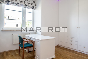 Z gabinetu i sypialni wyjście na zadaszoną loggię z widokiem na ogród.