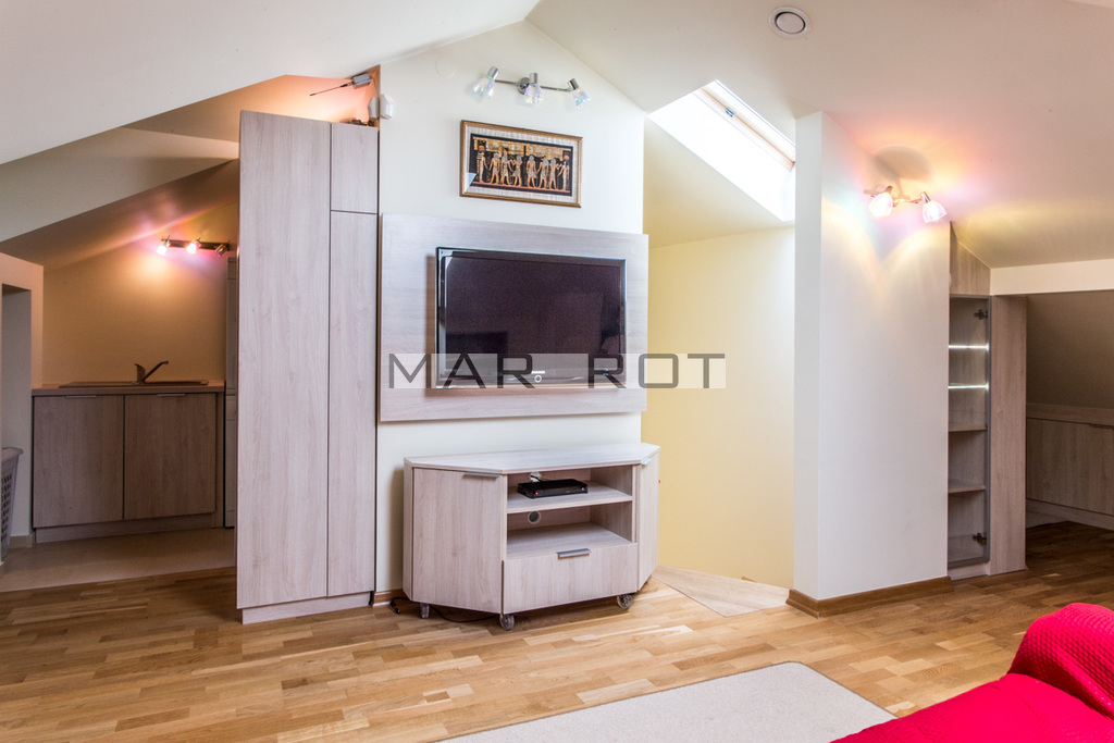 Poddasze to przestronna, wielofunkcyjna przestrzeń - świetna jako pokój zabaw, gościnny lub dodatkowy salon. Znajduje się tu także praktyczna pralnia z pralką i suszarką oraz liczne, estetycznie zabudowane schowki.