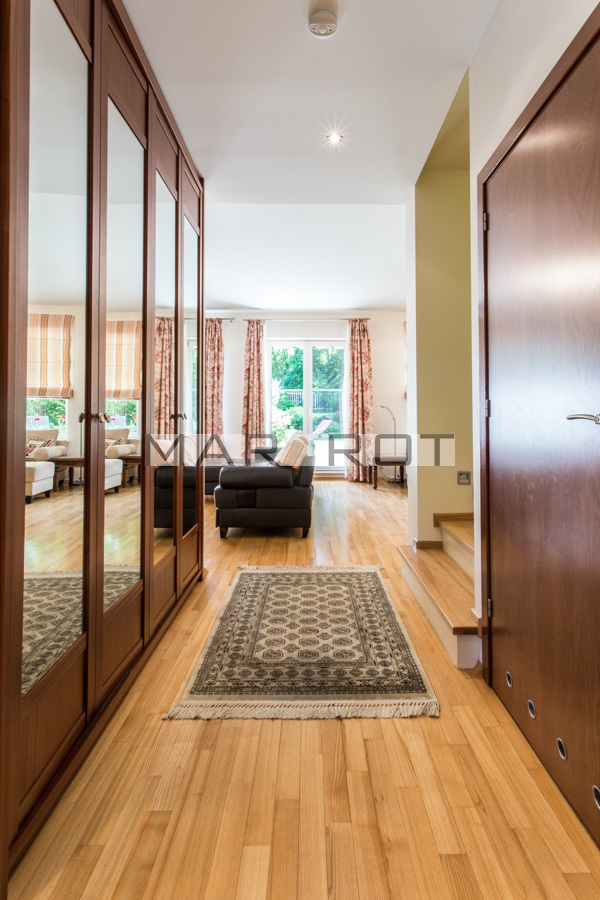 Elegancki, skrajny segment na prestiżowym, zamkniętym osiedlu Wille Laguna na Ursynowie.