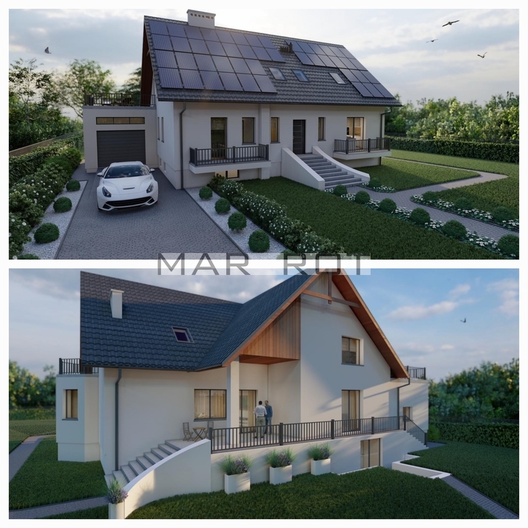 Przedmiotem oferty jest działka o powierzchni 24 ary, zabudowana nowoczesnym domem w stanie surowym zamkniętym o powierzchni 283 m2, oraz budynkiem gospodarczym.