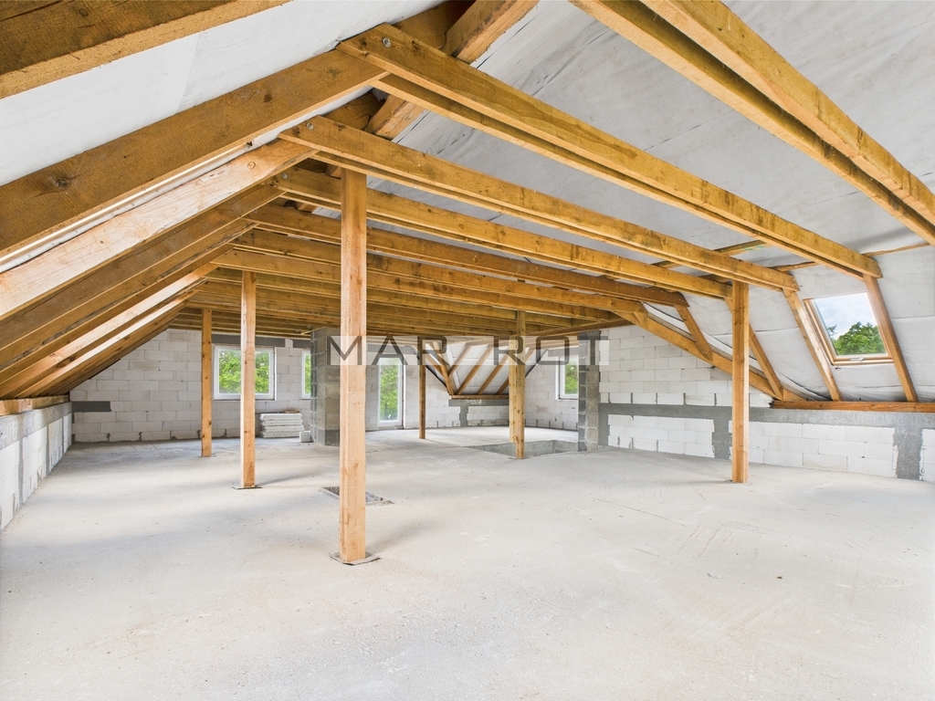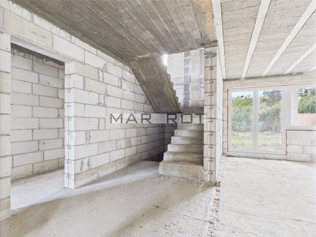 - Przedmiotem oferty jest ogrodzona działka o powierzchni 24 ary, zabudowana nowoczesnym domem w stanie surowym zamkniętym o powierzchni 283 m2, oraz budynkiem gospodarczym.