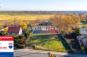 - działkę 402/2 o powierzchni 950 mkw. Szerokość ok. 29 m, głębokość ok. 32 m, płaska, niezadrzewiona.