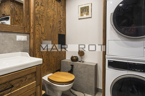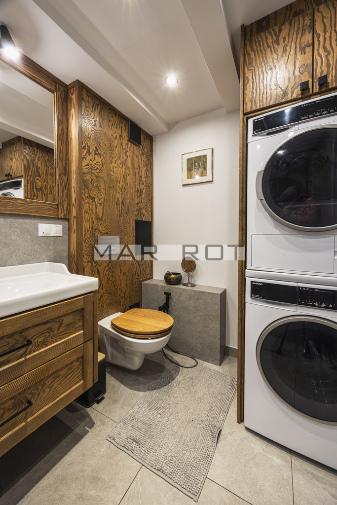 Łazienka - 6 mkw - przestrzenna, z wanną i prysznicem oraz automatyczną pralką i osobną automatyczną elektryczną suszarką.