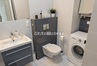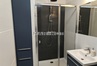 Łazienka duża kabina prysznicowa, umywalka, pralka, wbudowana szafka, toaleta.