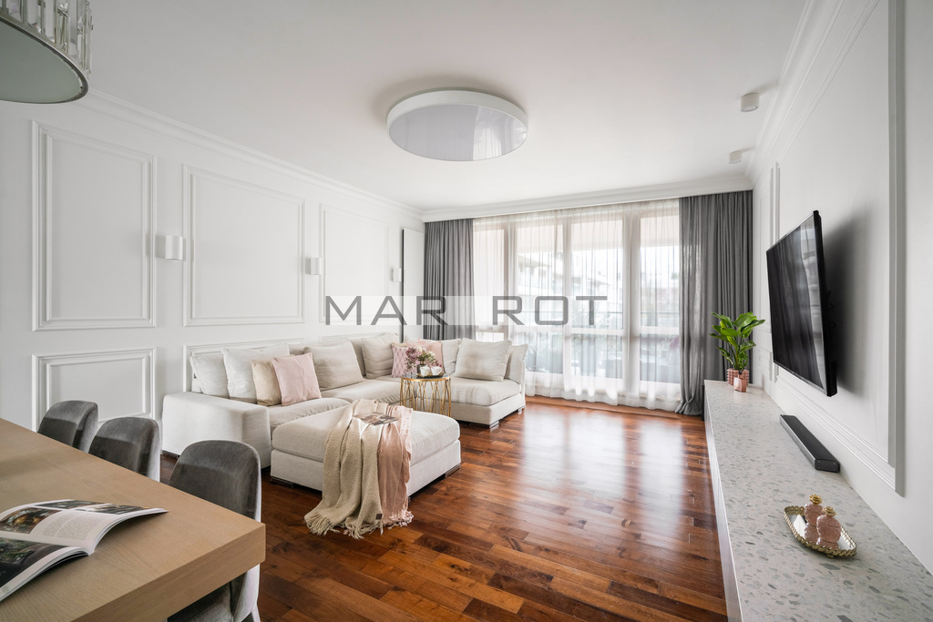 Przestronne mieszkanie w Wilanów One | 117,4 m2 | 4 pokoje | 2 loggie | Klimatyzacja | Sarmacka 19