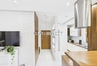 - Przestronny salon z otwartą kuchnią - centralny punkt mieszkania z dużymi przeszkleniem i wyjściem na balkon.