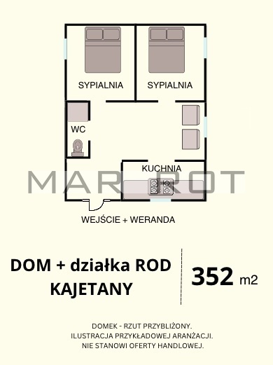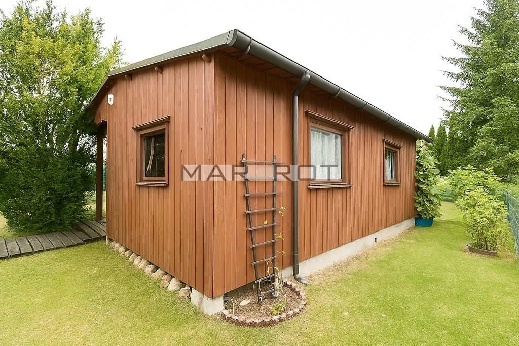 Działka ROD znajduje się przy ulicy Czarny Las 60, KAJETANY. Działka jest pięknie zagospodarowana i utrzymana. Na działce o powierzchni 352 mkw znajduje się domek drewniany w bardzo dobrym stanie z ochroną i dodatkową komórką. Domek składa się z werandy, kuchni, salonu i dwiema osobnymi sypialniami. W domku wygospodarowano miejsce na WC i prysznic. Zarówno działka jak i cały teren ogródków jest ogrodzony, wydzielone miejsca parkingowe dla odwiedzających, brama wjazdowa zamykana. Dojazd zapewnia samochodem lub autobusem miejskim, którego przystanek znajduje się około 300 metrów od bramy ogródków.