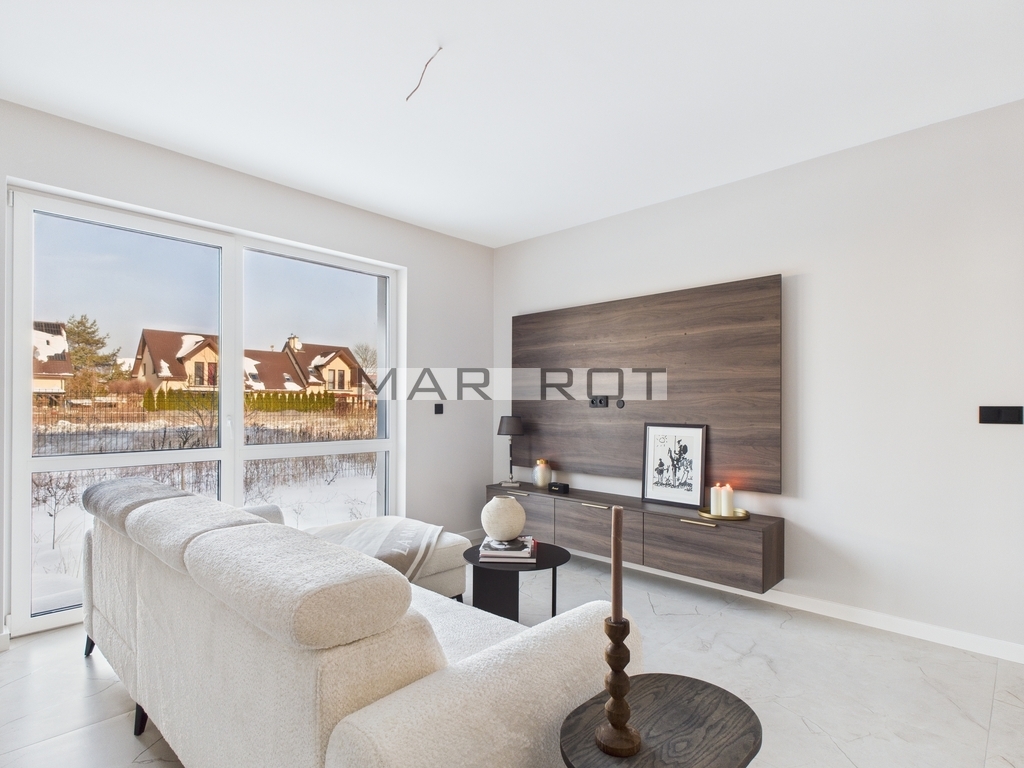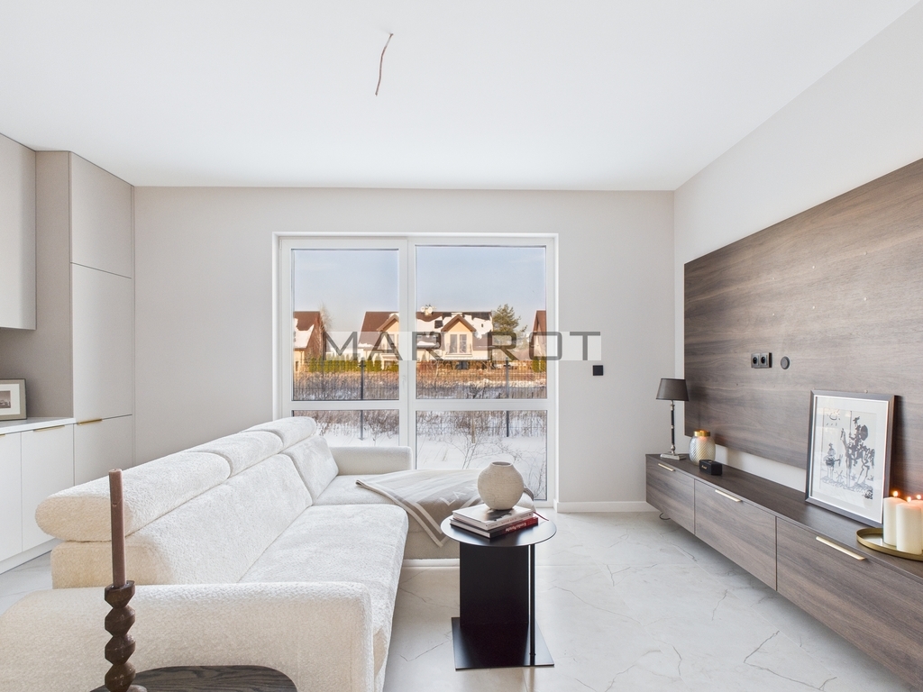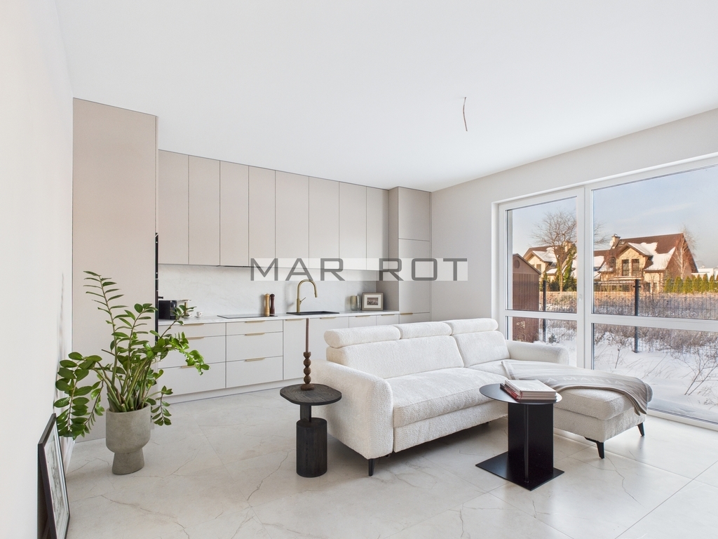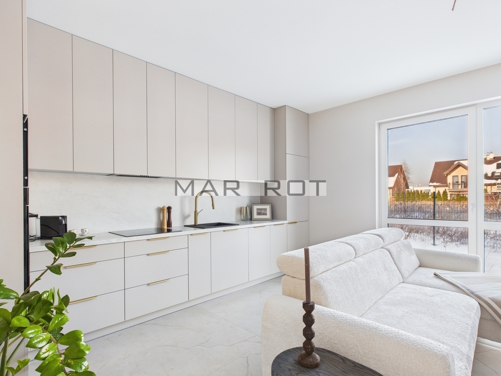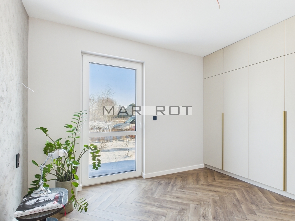 Na sprzedaż niezamieszkane mieszkanie na parterze kameralnego budynku. Wnętrze obejmuje salon z aneksem kuchennym i wyjściem do ogródka, sypialnię również z wyjściem na ogród, dodatkowy pokój (gabinet/pokój dziecięcy), łazienkę i przedpokój.