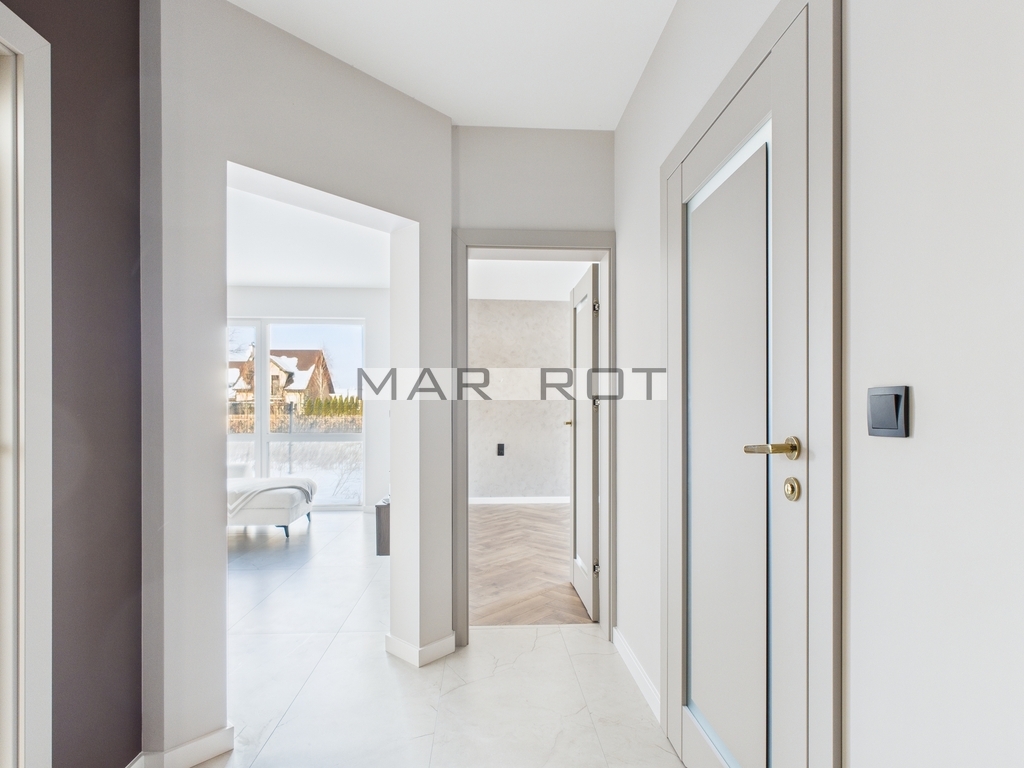 - Kuchnia w pełni wyposażona w nowy sprzęt AGD i pralkę - wszystkie urządzenia z kartami gwarancyjnymi, nigdy nieużywane