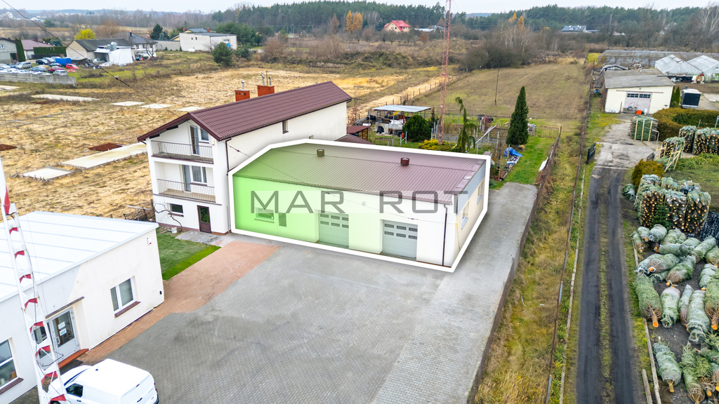 Nieruchomość zlokalizowana bezpośrednio przy trasie S7 (przed Tarczynem) - z doskonałą widocznością z drogi, dużym placem manewrowym i parkingiem.