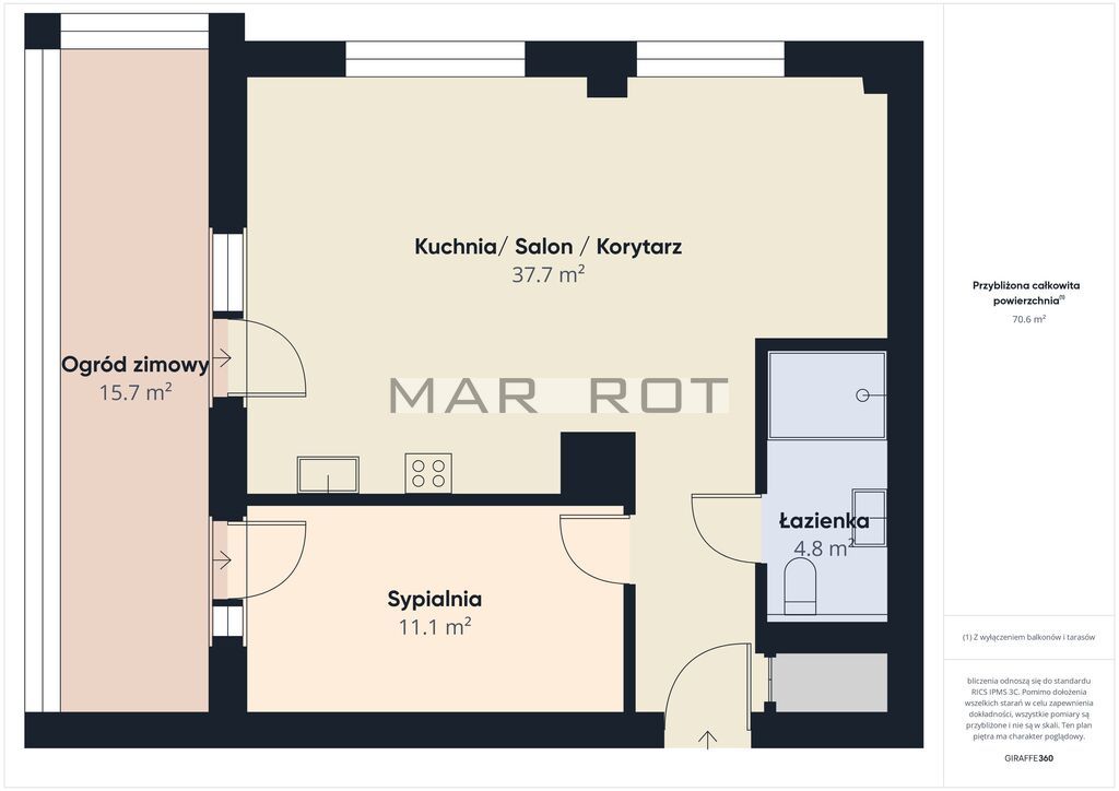 70 m2 komfortu, światła i harmonii (53 m2 apartament + ogród zimowy).