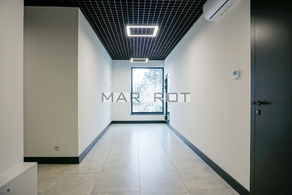 Obiekt z 2025r., nowocześnie i gustownie wykończony. Do dyspozycji najemcy WC, pokój socjalny z aneksem kuchennym i sala konferencyjna na parterze. Cały budynek jak i poszczególne pokoje są klimatyzowane. Posiadają również dostęp do Internetu.