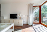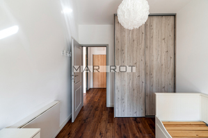 W sypialni znajduje się łózko o szerokości 160cm ze skrytką na pościel. Isnieje możliwość złożenia łóżka na szerokość 80cm. Nowy materac zostanie dokupiony przez Właściciela .