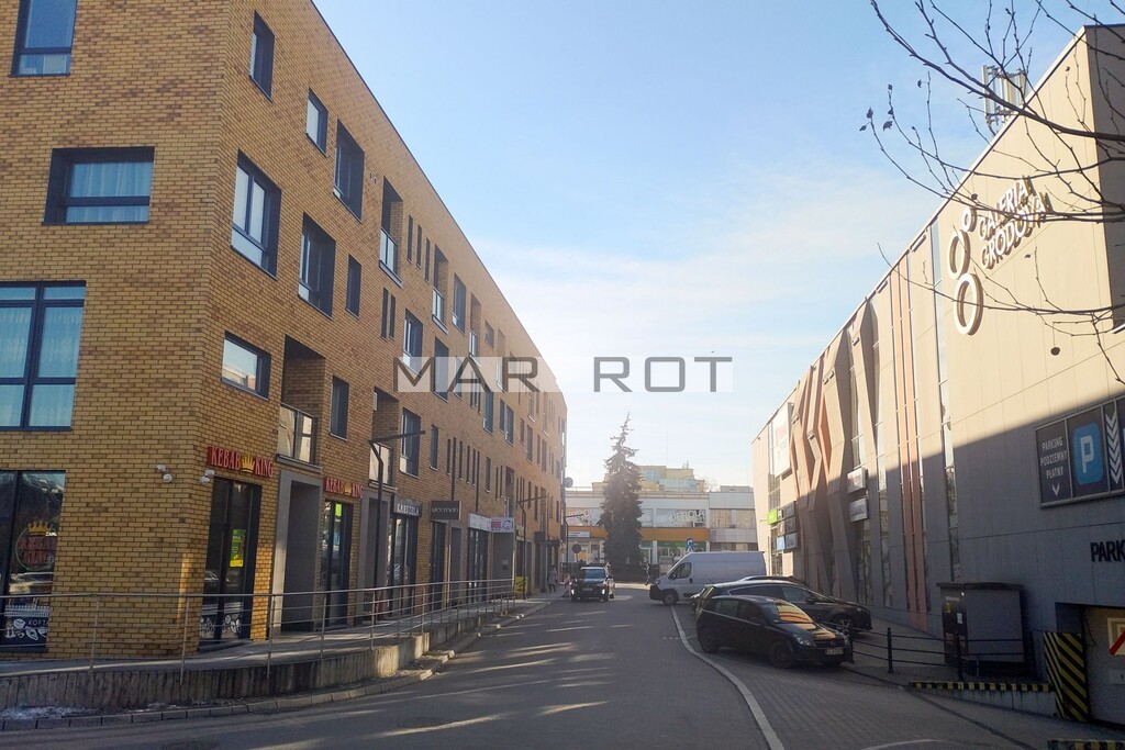 - Sklepy i usługi (Biedronka, Lidl, Rossmann, restauracje, banki) - 100-300 m