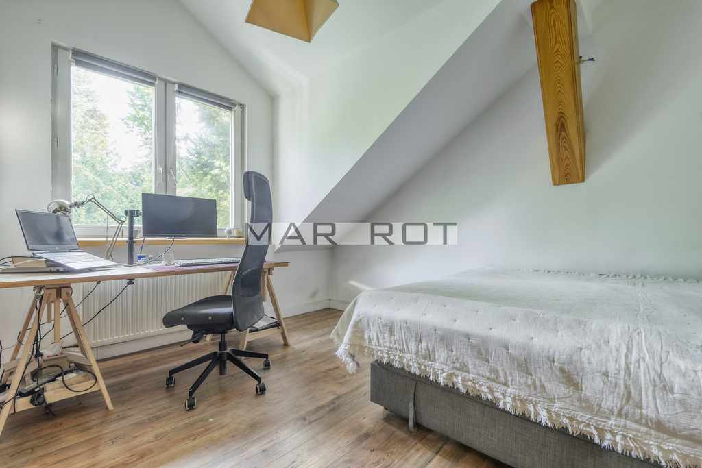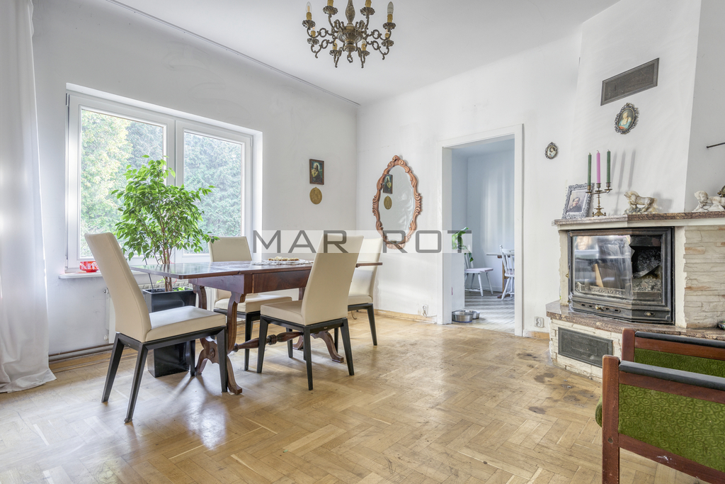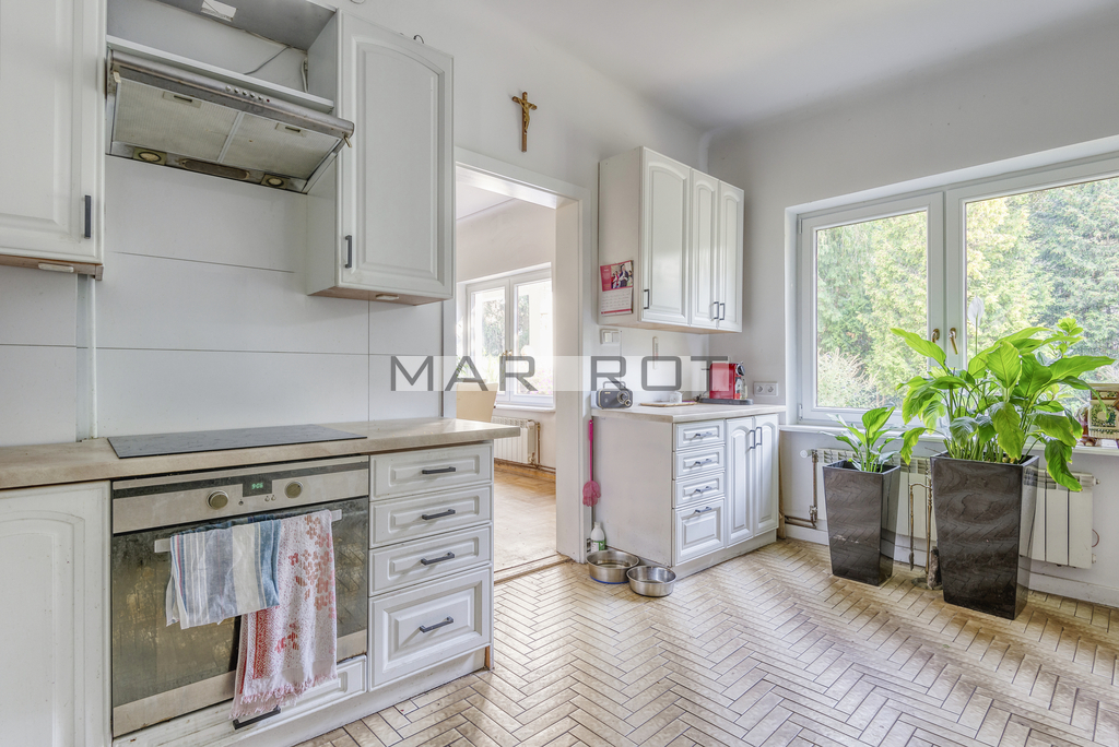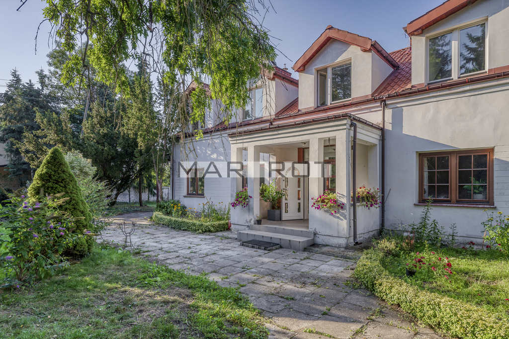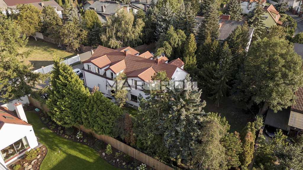 Na sprzedaż niezwykły, wolnostojący dom o powierzchni 344,66 m2, usytuowany na malowniczej działce 1207 m2 w prestiżowej, cichej i zielonej części Powsina, przy ul. Przekornej.