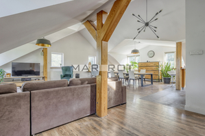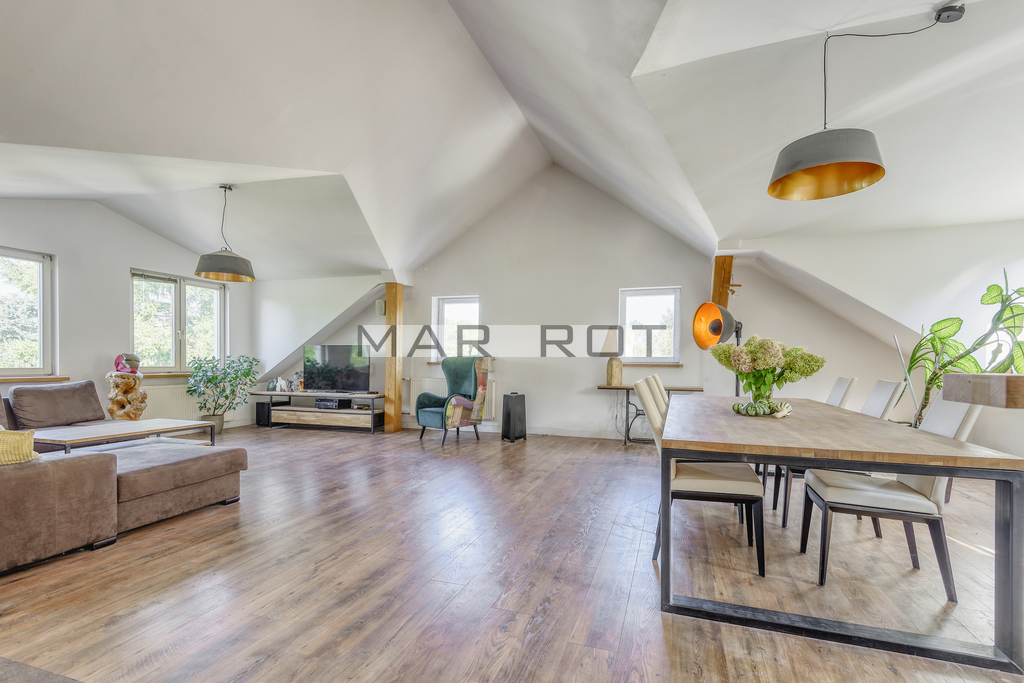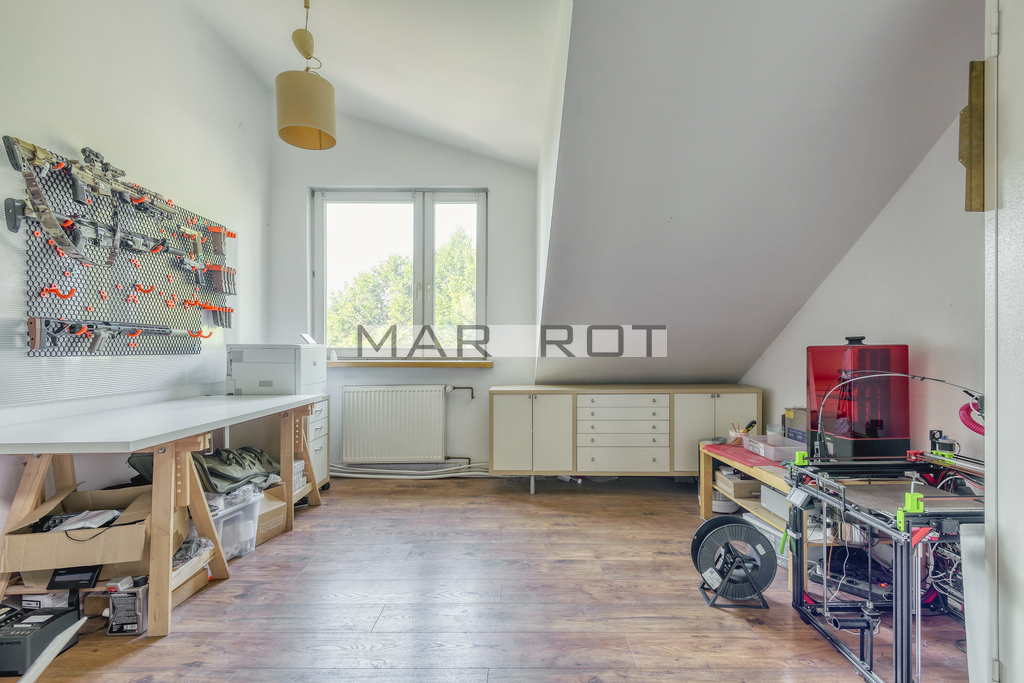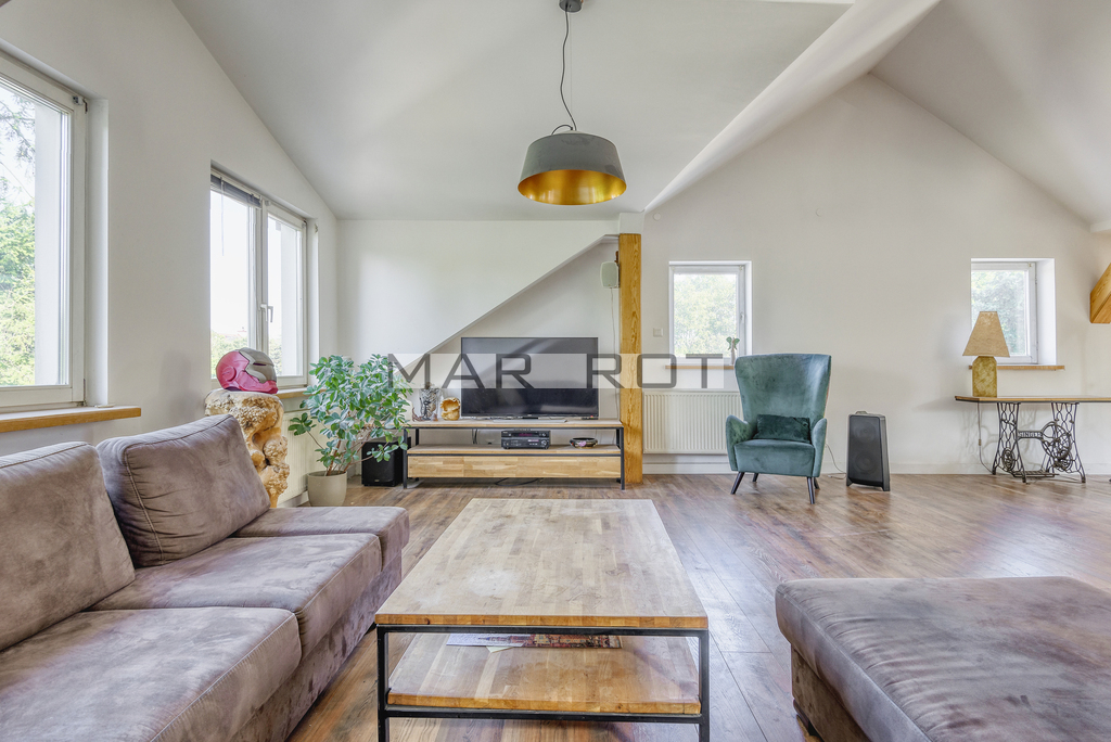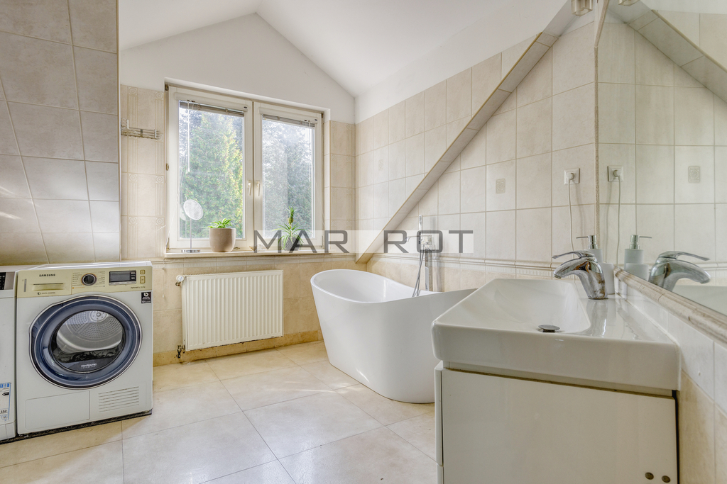Na sprzedaż niezwykły, wolnostojący dom o powierzchni 344,66 m2, usytuowany na malowniczej działce 1207 m2 w prestiżowej, cichej i zielonej części Powsina, przy ul. Przekornej.