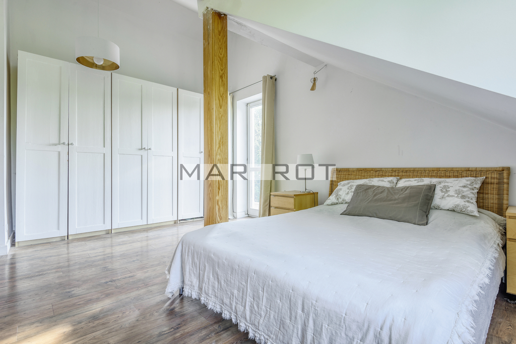 Ten przedwojenny dworek, niegdyś siedziba zarządcy terenów rolnych i leśnych dóbr wilanowskich, łączy w sobie duszę historii z komfortem współczesności. W 2000 roku został rozbudowany, zmodernizowany i przystosowany do potrzeb nowoczesnej rodziny - wymieniono instalacje, podwyższono budynek i urządzono dodatkowe mieszkanie na piętrze.