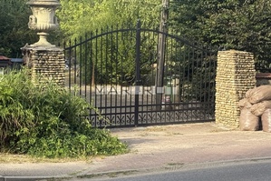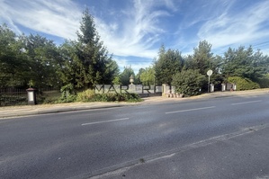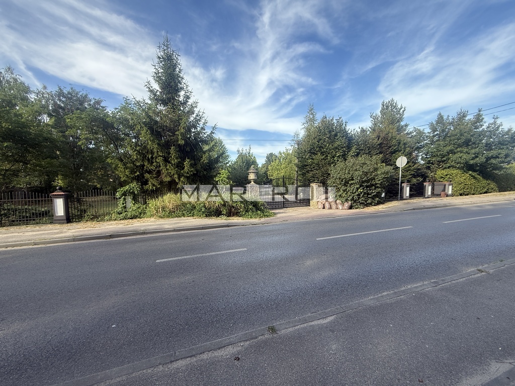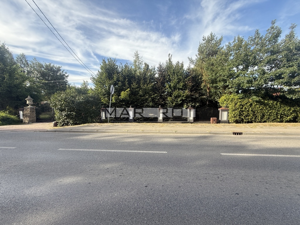 Działka od strony ulicy oddzielona jest eleganckim ogrodzeniem z efektowną, zautomatyzowaną bramą wjazdową, a wjazd na posesję został wyłożony kostką brukową, co podkreśla reprezentacyjny charakter nieruchomości.