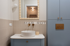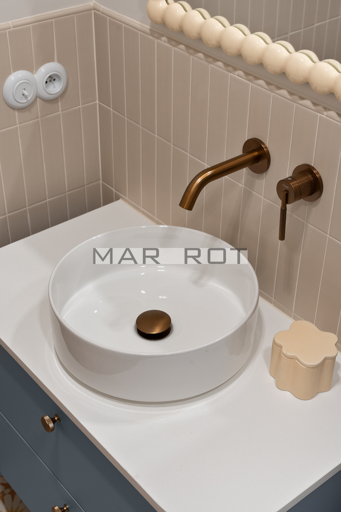 Łazienka z wanną, stylową armaturą w kolorze miedzi