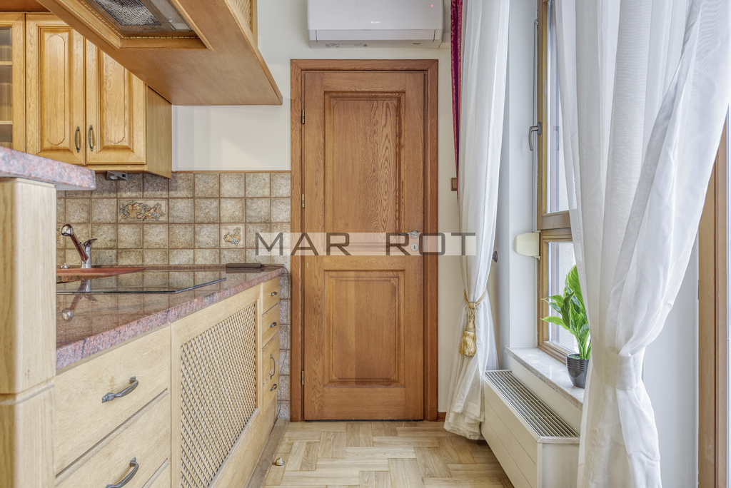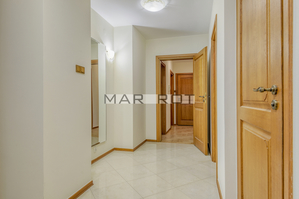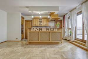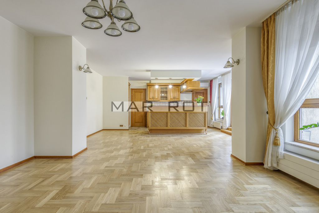 The apartment is unfurnished and finished with high-quality materials.