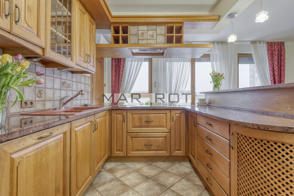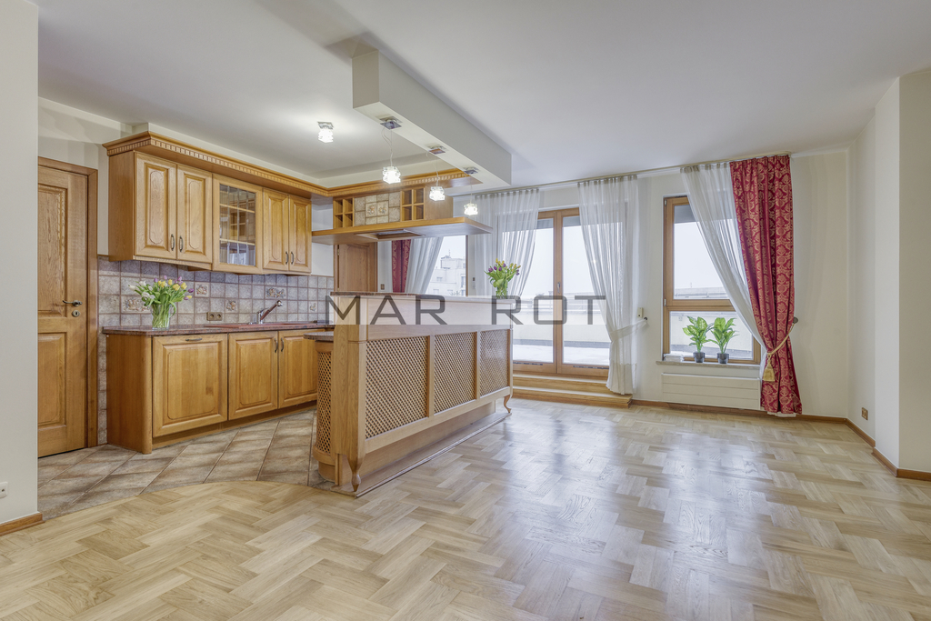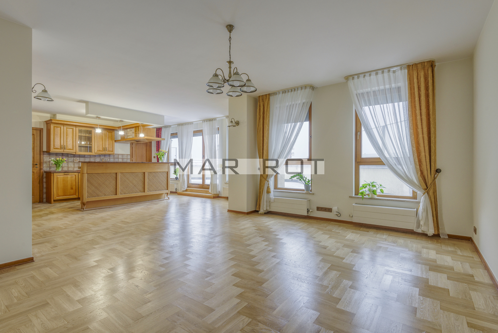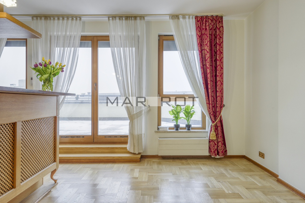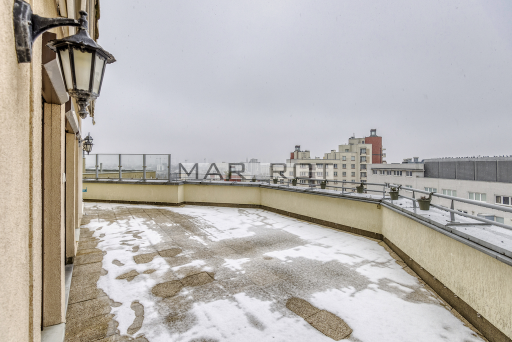I am offering an attractive, exceptionally bright apartment of 133 m2 with a large 60 m2 terrace, located on the 10th floor at Słomińskiego 19 for rent. The unit benefits from excellent natural light, with windows facing south-west and north-east.