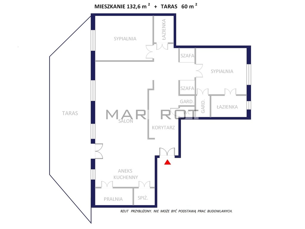 - salon z aneksem kuchennym (ok. 50 m2) - z wyjściem na duży taras (ok. 60 m2)