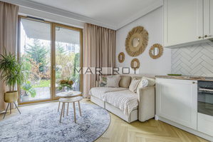 Elegancka kawalerka w pełni umeblowana i urządzona (lodówka, pralko-suszarka, zmywarka).