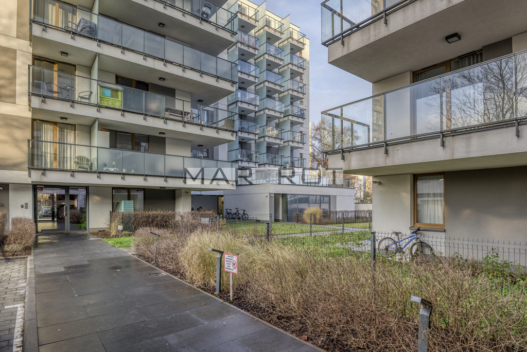 Mieszkanie mieszczące się na parterze na zamkniętym, monitorowanym z ochroną osiedlu .