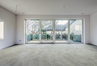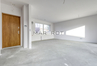 przestronny salon o powierzchni 37,96 m2 z dużymi przeszkleniami i bezpośrednim wyjściem do ogrodu