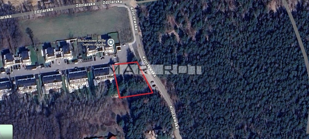Bezpośrednio przy lesie i przy wjeździe do osiedla Bluszczowe Wille ul. Kroczewska 73