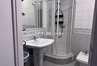 łazienka z prysznicem i pralką.