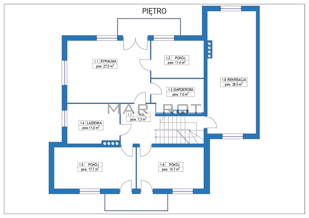 pokój rekreacyjny - 28m2 (znajduje się na półpiętrze, nad garażem)