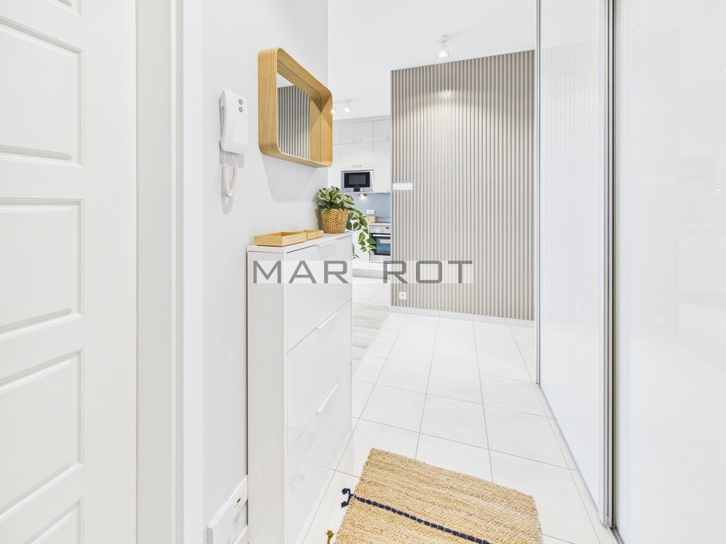 możliwość oddzielenia salonu przesuwną, szklaną ścianą (idealne do pracy zdalnej)