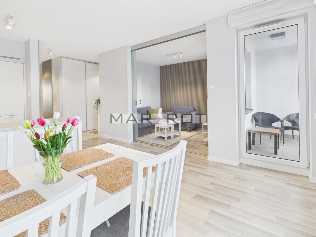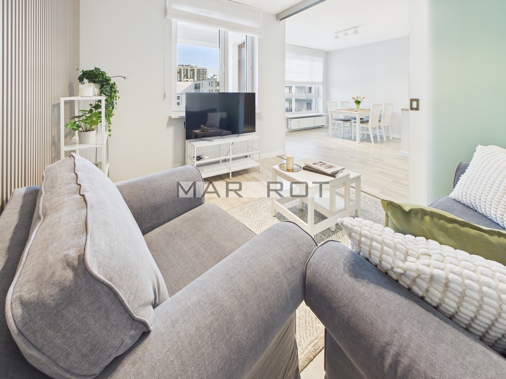 Do wynajęcia jasne, przestronne i w pełni wyposażone mieszkanie o powierzchni 57,5 m2 przy ul. J. Nowaka-Jeziorańskiego 51 w dzielnicy Praga-Południe w Warszawa.