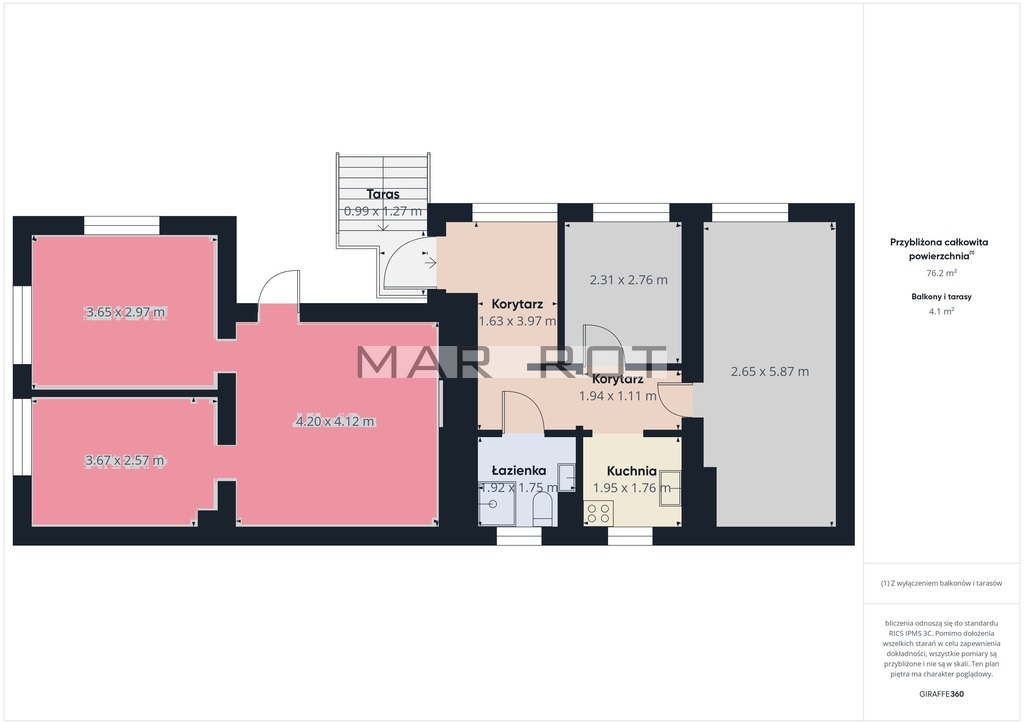 -Na załączonych planach (po lewej stronie, na czerwono) znajdziesz dokładny rozkład pomieszczeń - z oznaczeniami powierzchni i wielkości poszczególnych pokoi/gabinetów. Spacer wirtualny oprowadzi Cię po wszystkich zakamarkach nieruchomości.