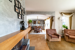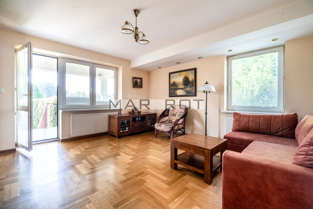 Dodatkowo na parterze jest wydzielona osobna część (kuchnia, łazienka, pokój z tarasem z wyjściem do ogrodu), mogąca być mieszkaniem dla rodziców, lub dzieci, lub dla gosposi.
