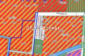 Wymiary działki szer. ok. 70m, długość ok. 114m. 1.500m2 zarezerwowane pod drogę wewnętrzną.