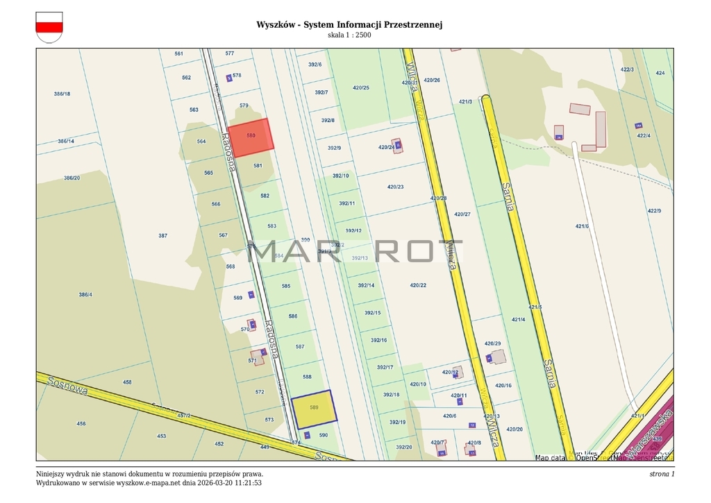 WYMIARY działki o numerze 580