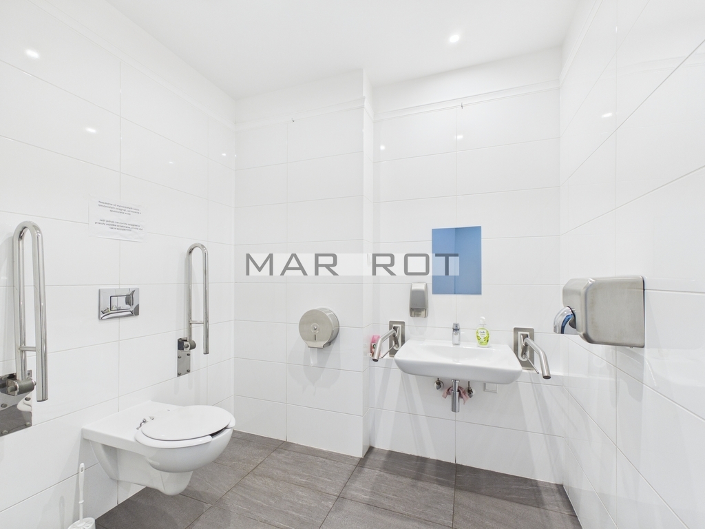 Niewątpliwym atutem lokalu jest również jego usytuowanie w budynku, wokół którego znajdują się liczne sklepy, restauracje, punkty usługowe, a przede wszystkim ciągi komunikacyjne w postaci linii autobusowych, tramwajowych i metra.
