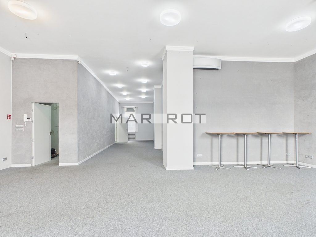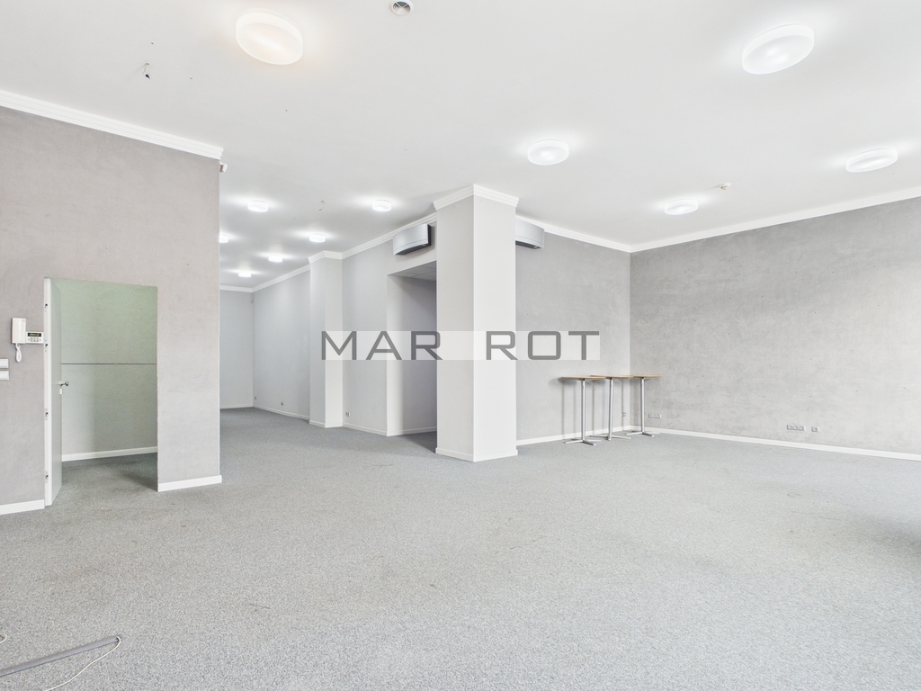 Lokal o powierzchni 110 m2 składa się z powierzchni biurowych przygotowanych do własnej aranżacji, dwóch toalet, kuchni. Bezpośrednio do poziomu lokalu dojeżdża winda.