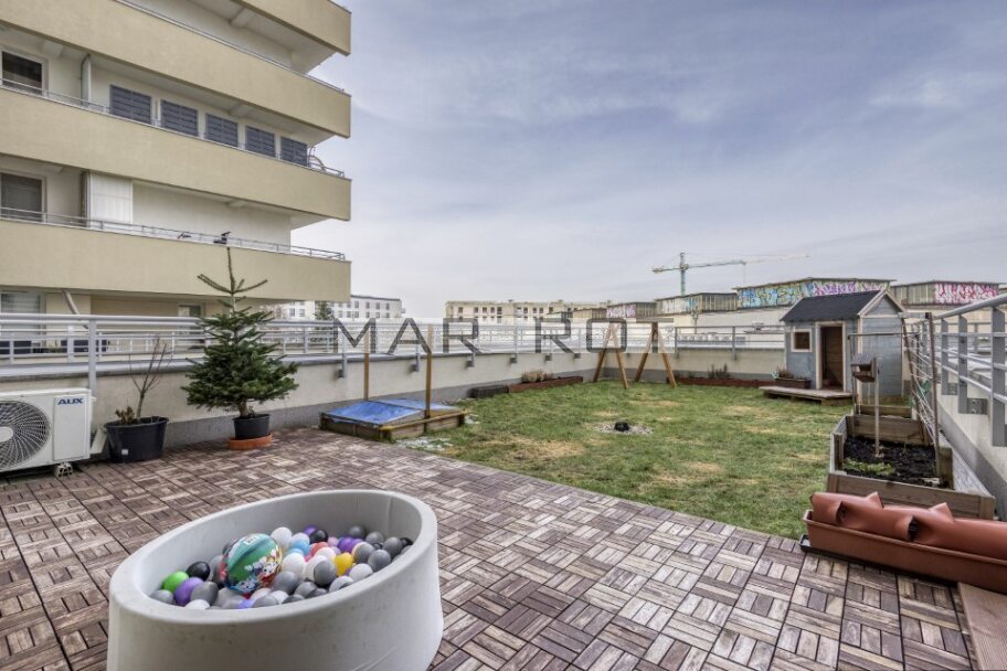Największym atutem nieruchomości jest bardzo duży taras o powierzchni ok. 58 m2, w tym część wybetonowana, idealna pod meble ogrodowe, jacuzzi, pergolę czy strefę relaksu.