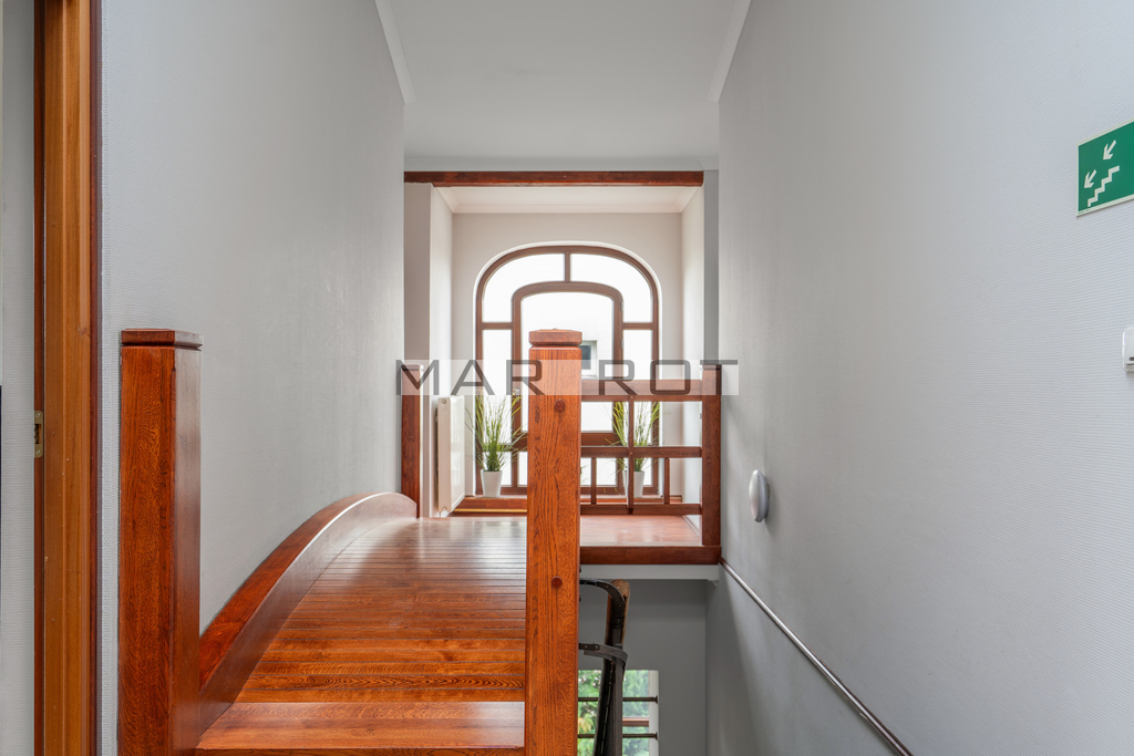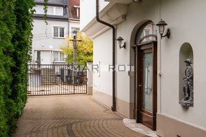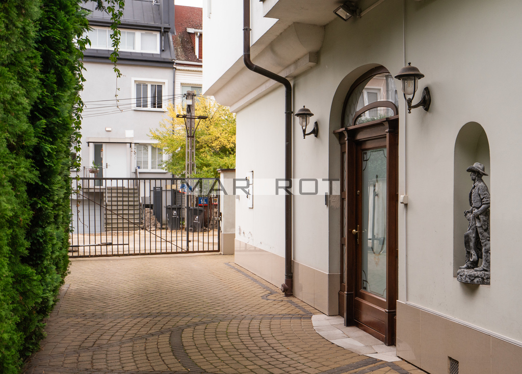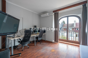 Konstrukcja budynku jest w bardzo dobrym stanie technicznym. Wnętrze budynku zostało zaaranżowane na potrzeby biurowe, zatem jest doskonałą opcją do kontynuowania tego celu, np. jako kancelaria prawna lub ambasada. Niemniej jednak przy odpowiednim zaaranżowaniu przestrzeni może służyć celom mieszkaniowym. Budynek usytuowany jest we frontowej części działki. Za nim znajduje się utwardzony, obszerny parking dla użytkowników i wolnostojący garaż o powierzchni około 32 m2, co na pewno stanowi bardzo duży atut tej nieruchomości.