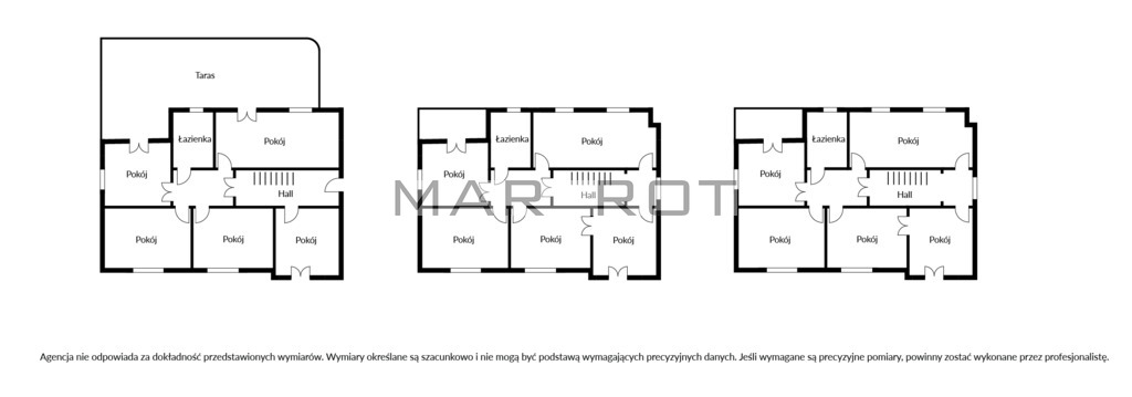 - poziom parteru, z pokojami, łazienką, oddzielną kuchnią, z której prowadzi wyjście na taras