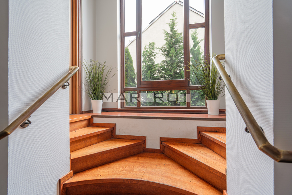 Ta unikatowa willa z lat 50-tych posiada powierzchnię użytkową 488,50 m2 i znajduje się na gruncie o łącznej powierzchni 859 m2. Dom jest murowany, rozbudowany i zmodernizowany. Przeszedł gruntowny remont w latach 2001 oraz 2017 r. Składa się z