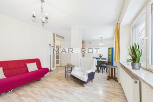 -Salon z aneksem kuchennym - przestronny, doskonale doświetlony dzięki dużym oknom, idealny do relaksu, spotkań z rodziną i przyjaciół.