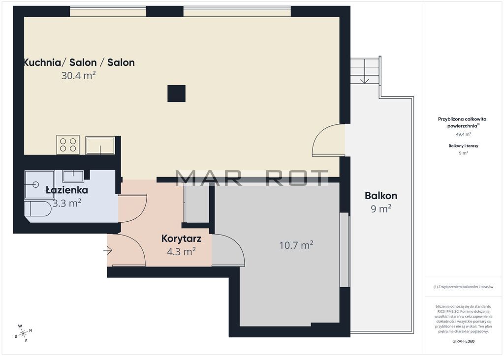 -Łazienka - funkcjonalna, z miejscem na pralkę i dodatkowe akcesoria.